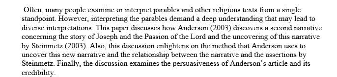 Steinmetz (2003) spoke of finding a “second narrative” within the biblical text, and Anderson (2003) did just that. In four to five paragraphs, respond to the following questions: