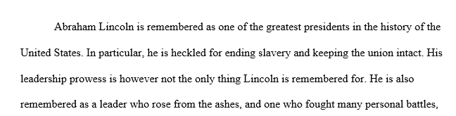 What are the struggles Abraham Lincoln had faced? How did he overcome them? What morals did he follow and how did they help him? How can one get influenced or learn from the how did Abraham Lincoln faced his troubles and his morals? How should younger generations inspire from him? POST IT IN 800 WORDS