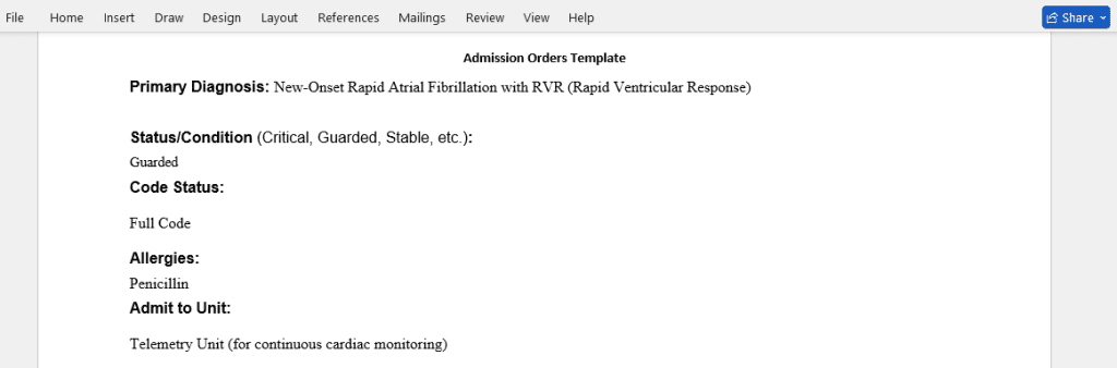 Make sure you provide rationales for your labs and diagnostics and anything else you feel the need to explain. This should be done at the end of the order set – not included with the order.