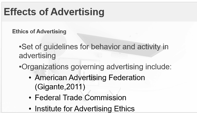 •Who determines ethical standards for advertising? Name three general, national organizations with regulatory power or professional influence.