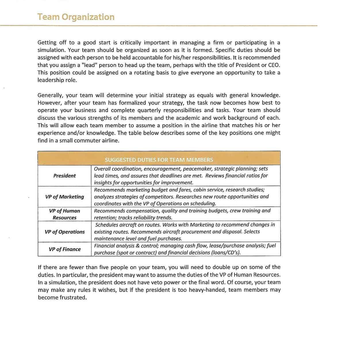 Read the Airline Student Manual on the Airline online simulation from Interpretive Simulations. Communicate with the members of your assigned team to collaborate on the first team assignment, Formulating Your Airline’s Strategy – Team, due in Unit 1. Use whatever means of communication your team finds most suitable for collaboration. With the members of your assigned team, formulate a team strategy, using the summary on page 6 and the details in Section 3 of the Airline Student Manual for guidance. As a group, write a report documenting your team’s strategy