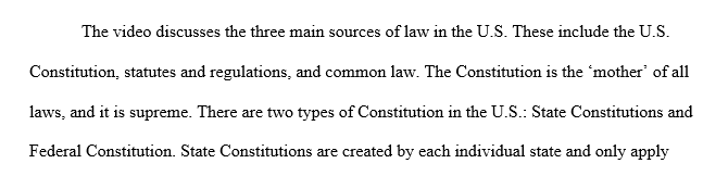 Please view the YouTube video on the Sources of American Law and answer the questions below: Please write a 2-3 page narrative answering the questions below in APA Writing Style citing all sources. Prepare your assignment in a Word Document.