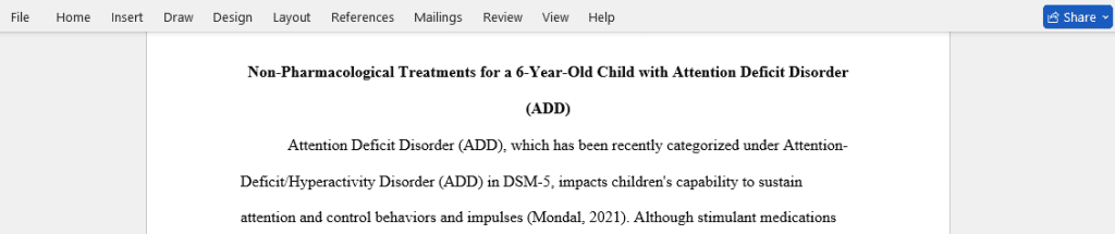 - Discuss four non-pharmacological treatments that you would recommend for a 6 year old child with ADD.
