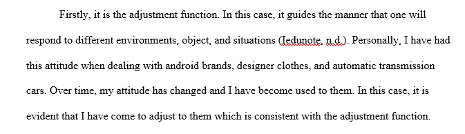 In chapter 7 of your textbook, Daniel Katz’s functional theory of attitudes is discussed. For each of the four functions discussed, In your own 300 words, develop a list of attitudes towards three brands that you have had experience with.  Have your attitudes changed over time?