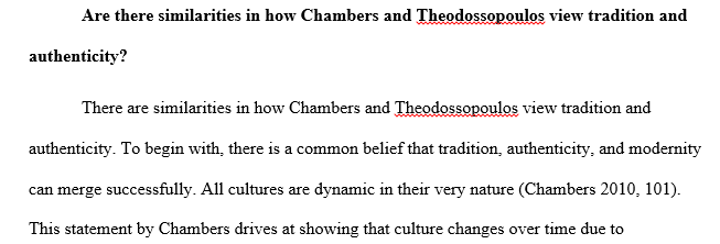 1. Are there similarities in how Chambers and Theodossopoulos view tradition and authenticity?