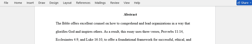 Search the Bible for at least three verses that would guide people in the understanding of organizations, their nature, structures, behaviors, etc. The paper must include three sections: