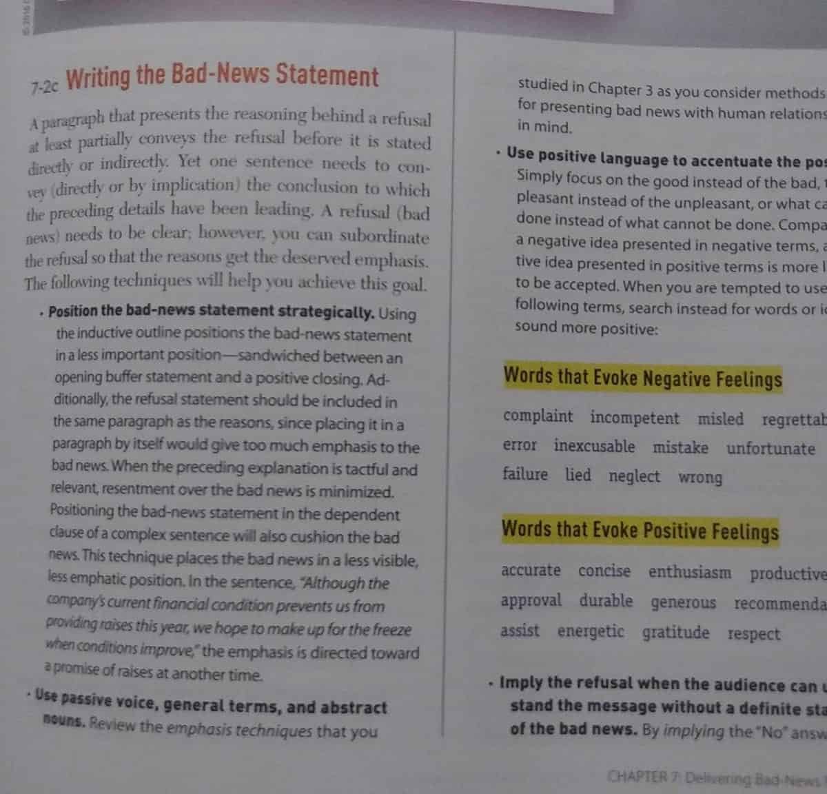 Write a Block Business Letter from the perspective of company management. It must provide bad news to the recipient and follow the guidelines outlined in Chapter 7: Delivering Bad-News Messages in BCOM7 (pages 110-128).