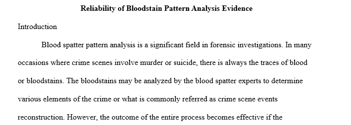 The topic will also elaborate in detail on the skills, qualifications and the work of blood spatter analysts, and the possible government or private institutions a learner can seek employment