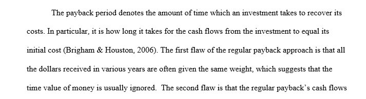 a) discuss potential flows with the regular payback method. Discuss whether or not the discounted payback method corrects all of these flaws.