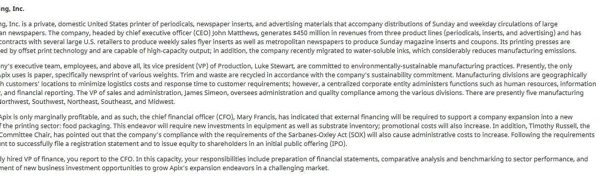 • Do you believe that there was sufficient financial information to make a solid decision on what to do?