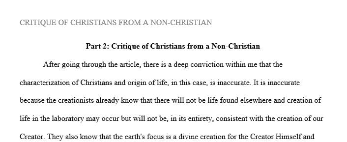 Next, you will read a short article on how one non-Christian views the Christian response to Origins of Life: