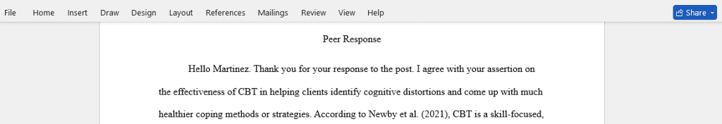 I appreciate your perspective on Cognitive Behavioral Therapy (CBT) and its structured approach to addressing negative thoughts and behaviors. I also find CBT highly effective in helping clients recognize cognitive distortions and develop healthier coping strategies. The emphasis on collaboration in goal-setting is particularly important, as it empowers clients to take an active role in their progress.