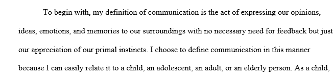 Come up with your own definition of communication. How does it differ from the definition in the book? Why did you choose to define communication the way you did?
