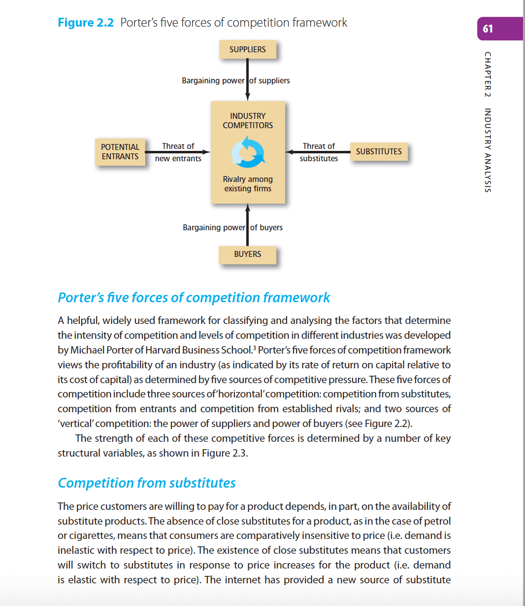 Critical Thinking: Industry Analysis (105 points) To prepare for this assignment, review Figures 2.2 and 2.3 from your textbook and the text relative to Porter’s Five Forces of Competition framework. Consider the role of the following key forces of suppliers, substitutes, buyers, and potential entrants. Select a Middle Eastern company of your choosing and assess the power of each of five forces on that firm: that is, how powerful are the buyers, suppliers, and substitutes? How formidable are the barriers to entry and how intense is the rivalry among existing firms? Which of the forces has the biggest impact on the firm and why? What are the structural determinants impacting the firm? Focus on how you see your chosen company positioned in the market vis-à-vis the five forces you have identified, and which recommendations would you give to the firm’s management to improve their position in relation to suppliers, buyers, barriers to entry, and competitors. Your well-written paper should meet the following requirements: Be 4-5 pages in length, which does not include the required title page or reference page, which are never a part of the content minimum requirements. Use academic writing standards and APA style guidelines. Support your submission with course material concepts, principles and theories from the textbook and at least two scholarly, peer-reviewed journal articles unless the assignment calls for more. Review the grading rubric to see how you will be graded for this assignment.