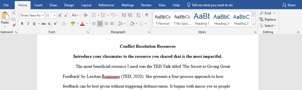 - Explain how these resources impacted your thoughts and ideas on conflict resolution