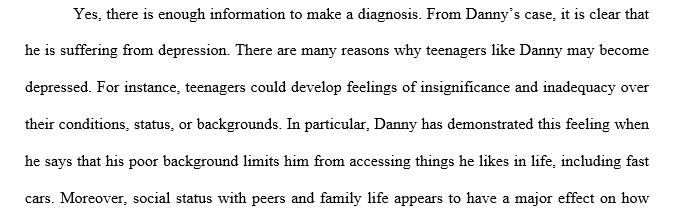 If you had to speculate on a possible diagnosis for Danny what would that diagnosis be? Why? Support your answer using the DSM and information from the scenario.