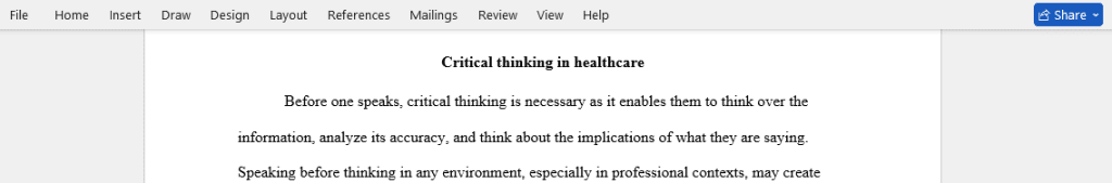 Why is it important to think critically before one speaks? Specifically, when someone is working in the medical field, why would critical thinking be important before communicating with a patient?