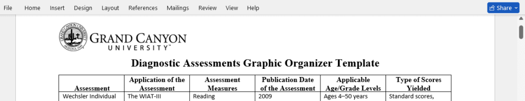Complete the “Diagnostic Assessment Graphic Organizer Template.”
