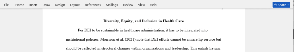 Answer preview to Diversity, Equity, and Inclusion in Health Care