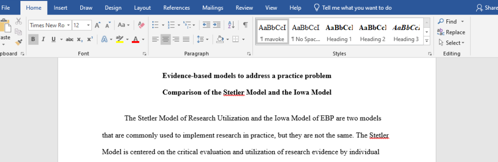 Use two evidence-based models to address a practice problem and respond the questions below in essay format. Be sure to integrate readings from at least 5 peer-reviewed articles.