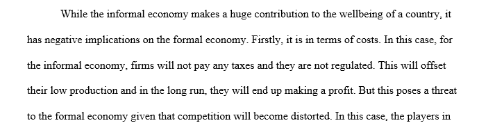Respond the question: What threats does the informal economy present to firms operating in the formal economy? Use examples from your personal experience with the informal economy.