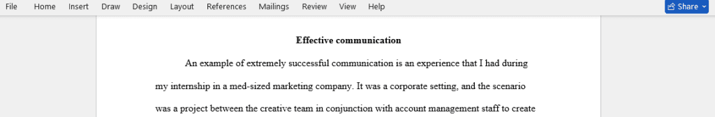 Communication is one of the most important skills you need to succeed in the workplace. Having a solid foundation of what Effective communication is starts by being able to recognize it in action. This allows you to bridge the new information, strategies, and concepts you’re learning with your prior communication-related knowledge, skills, and abilities. In this assignment, you will draw on your personal experience related to highly effective communication and share what made it so successful.