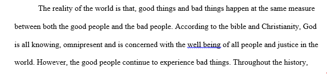 In your own words, explain the “Problem of Evil.” In other words, regardless of what you personally believe, if there is a God who is all-powerful, all-knowing, and concerned with justice and the well-being of humanity, explain how there can be so much evil and suffering in the world.
