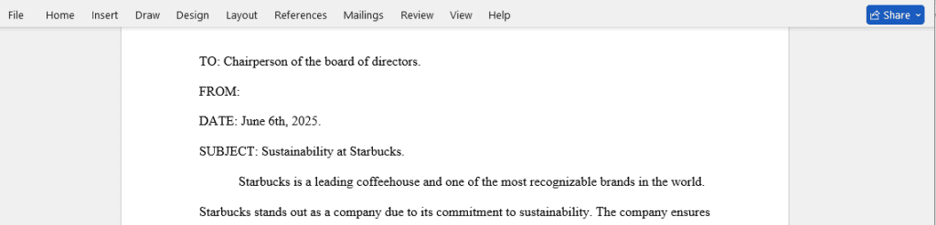 Prepare a comprehensive memo to the chairperson of the board of directors for your selected company. Your memo includes outlining your analysis, findings, and recommendations.