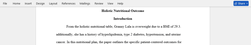 Utilize the Table (click on the file) to document nutritional assessment – Table Holistic Nutritional Assessment Table. The table must be included in your assignment.