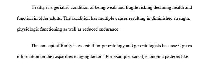 Summarized the ideal of frailty in gerontology and the many uses that you can think of.