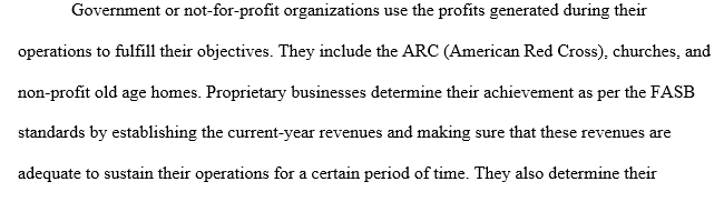 What are some examples of government/not-for-profit organizations? How do proprietary businesses measure success following the FASB accounting guidelines? How do government organizations measure success following the GASB accounting guidelines? Compare and contrast the differences between GASB and FASB.