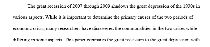 Write a research proposal about Comparing the Great Recession or financial crisis to the Great Depression of the 1930s.