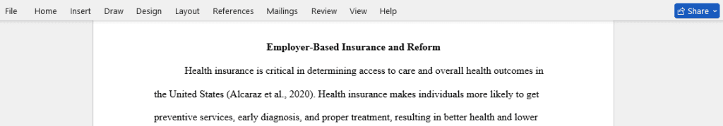 In the United States, most individuals obtain health insurance through their employer. Briefly describe the impact of Health insurance on access to care and health outcomes. Is a reliance on employer-based health insurance plans ideal for the individual, health care providers, employers, and society? Should the federal government have a more prominent role in providing health insurance? Explain and defend your positions with evidence, and recommend a policy action that aligns with your position.