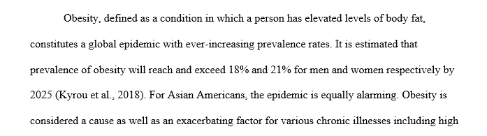 Obesity – Asian American health issue – essay 3-5 pages