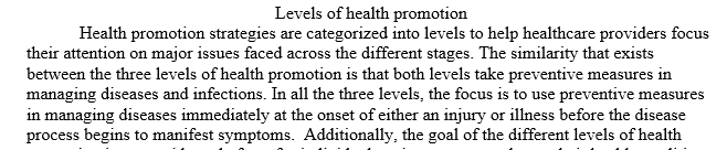 QUESTION 2. Compare and contrast the three different levels of health promotion (primary, secondary, tertiary). Discuss how the levels of prevention help determine educational needs for a patient.