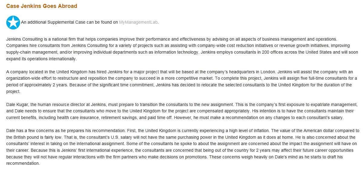 Part 1 Jenkins Goes Abroad Use your Strategic Compensation: A Human Resource Management Approach text to read the case study