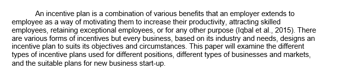 Short essay on incentive plans.