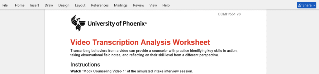 Transcribing behaviors from a video can provide a counselor with practice identifying key skills in action, taking observational field notes, and reflecting on their skill level from a different perspective.