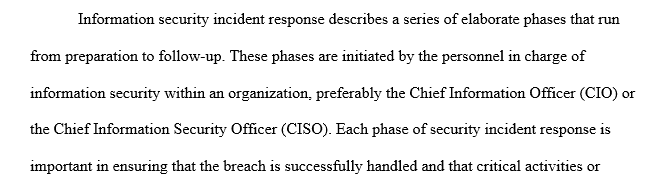 Discuss the phases of a typical information security incident response. Using the information presented in the handout, discuss the following questions: