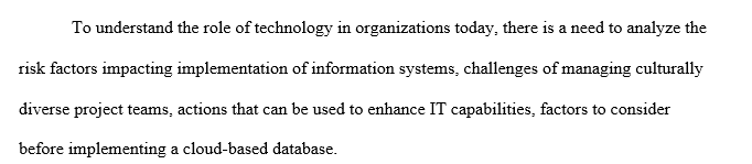 This paper presents a studious overview of key project success factors in the implementation of information system to business systems. Review this paper, then in your ePortfolio summarize the top two risk factors impacting the success of information systems implementation. State how you will address these potential risks in your organization. Share your workplace-based examples in Discussions.