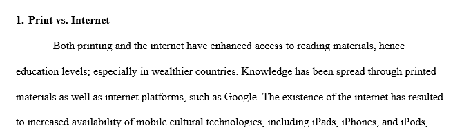 After reviewing the PowerPoints for this week, what parallels or similar consequences can be found in the introduction of printing and the introduction of the internet? What similar new advantages did each provide? What similar cultural changes did each cause?