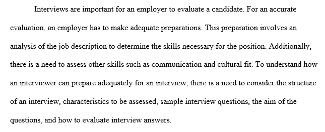 For the Module 6 Critical Thinking assignment, prepare an interview for a real or fictitious position for which you are hiring. Write a 2-3 page referenced paper addressing the following questions:
