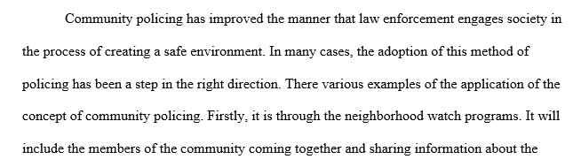 Community policing has revolutionized law enforcement’s approach to crime across the nation. Modern policing involves law enforcement serving as a liaison between the community and the department and helping the community to solve problems on its own. Use the course materials and library resources to complete this assignment.
