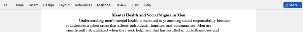 Assignment Instructions: Before you start writing your paper, please look over the following documents that have the data you will use. As you read the data, focus on one relevant topic that the data presents. The data I provide shows Men\’s perspectives on social connections, mental, and physical health. Select the topic that you prefer.