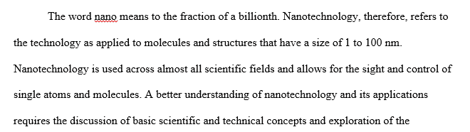 Use the Internet, Argosy University library resources, and your textbook to research the field of nanotechnology.