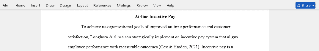 • Discuss how an organization can utilize incentive pay to achieve organizational goals and propose the best option for Longhorn Airlines.