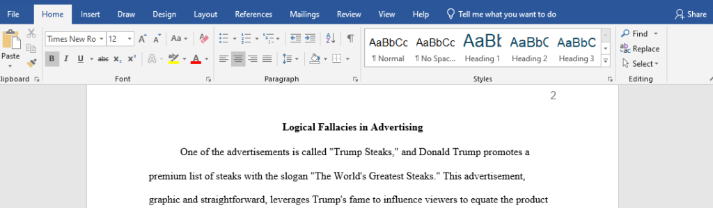 For this week\\\’s assignment, begin by finding an online example of a product advertisement, an Organizational campaign, or some other public message that uses logical fallacies as part of its persuasive argument. Have fun with this!