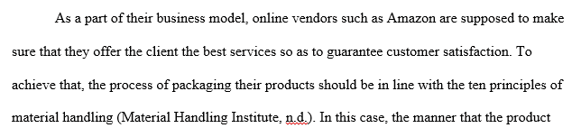 Give a positive or negative example of a personal experience with packaging. Looking at that package, briefly describe how you see the ten material handling principles had a positive or negative effect on the product.