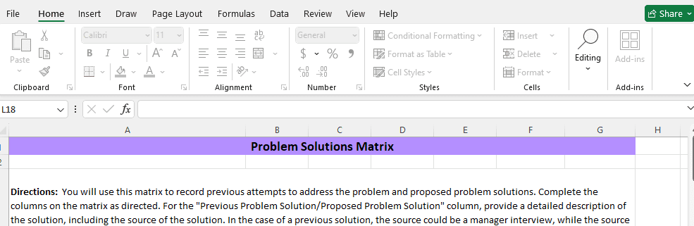 Complete the “Problem Solutions Matrix” spreadsheet according to the directions and submit it to your instructor.