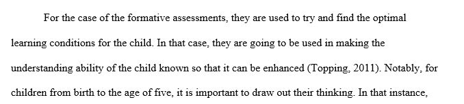 1. Use of formative and summative assessments in the Birth to Age 5/Pre-K and K to Age 8/Grade 3 classrooms;